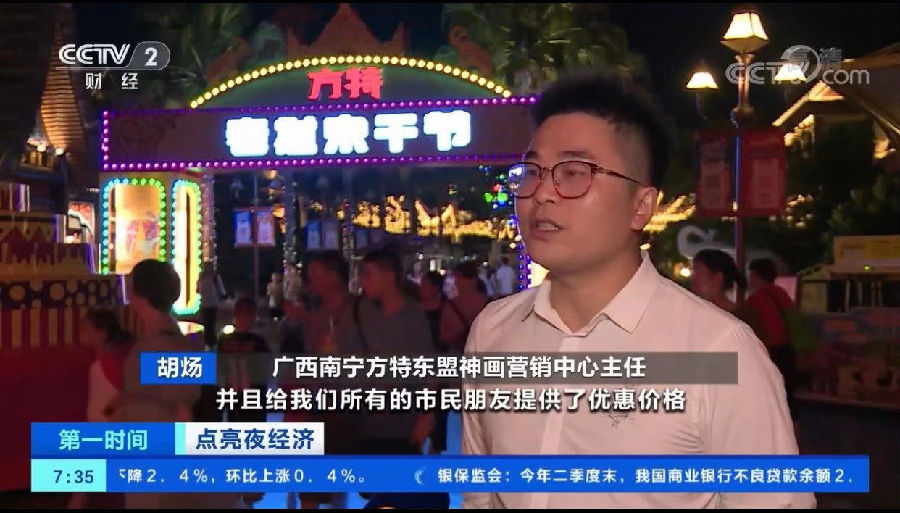 央視新聞頻道和財經(jīng)頻道的新聞報道指出,今年暑期,多地景區(qū)的夜游新場景、新玩法、新體驗紛紛搶占文旅消費市場,也更加貼近了廣大游客的需求。在新聞報道中,央視著重介紹了南寧方特的夜場活動:“南寧方特東盟神畫開啟了13小時日夜暢玩模式,當夜幕降臨,花車大巡游、美食夜市、嘻哈電音演出等紛紛登場,帶給游客赴全新的游玩體驗。”