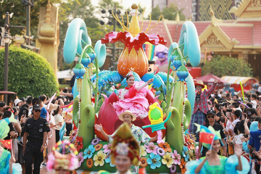 南寧方特東盟神畫則充分結(jié)合東南亞風(fēng)情,在長假期間隆重舉辦“方特第三屆東盟文化節(jié)——老撾國花盛典”。重金打造的十里《花漾畫境》由上萬朵老撾占芭花簇?fù)沓梢黄盎ê!保c鑲在畫框中的東盟美人“人面桃花相映紅”。還有東南亞舞者傾情演繹的“東南亞風(fēng)情盛典”——流傳千年的祭月盛典,讓游客不出國門沉浸式感受東南亞特色風(fēng)情。此外,南寧方特還在國慶期間薈萃東南亞十國特色美食,讓游客暢享舌尖上的“東南亞”之旅。