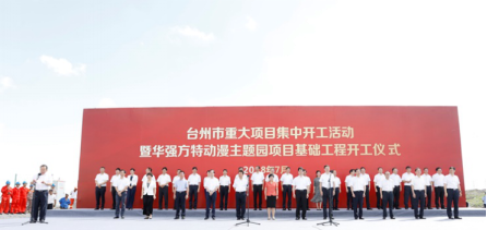 7月9日,臺州市舉行了重大項(xiàng)目集中開工活動暨華強(qiáng)方特動漫主題園項(xiàng)目基礎(chǔ)工程開工儀式,臺州市委書記陳奕君,市委副書記、代市長張曉強(qiáng),市委常委、常務(wù)副市長董貴波,臺州灣產(chǎn)業(yè)集聚區(qū)管委會主任黃繼滿,華強(qiáng)方特集團(tuán)總裁劉道強(qiáng)等出席開工儀式。