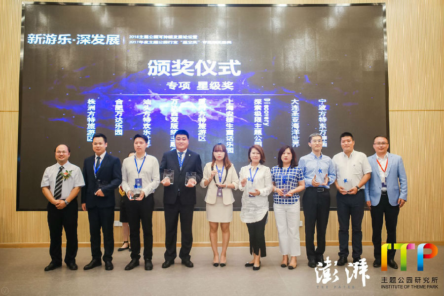 7月10日,由上海交大海外教育學(xué)院主題公園研究所及澎湃新聞聯(lián)合主辦的2018中國主題公園發(fā)展高峰論壇暨2017年度主題公園行業(yè)首屆“星空獎(jiǎng)”評選頒獎(jiǎng)儀式在上海舉行。華強(qiáng)方特集團(tuán)總裁劉道強(qiáng)獲得“2017年度主題公園行業(yè)人物獎(jiǎng)”,華強(qiáng)方特旗下蕪湖方特、廈門方特、寧波方特、汕頭方特、株洲方特及南寧方特則斬獲13個(gè)主題公園單項(xiàng)獎(jiǎng)。