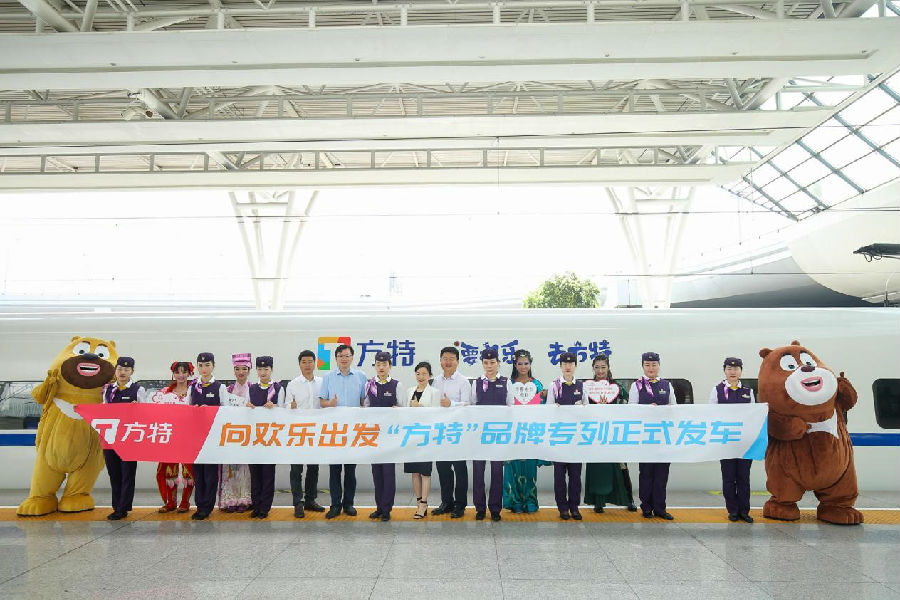 6月11日,在全民關注的高考剛剛落幕不久,華強方特集團冠名的“方特號”D2285次動車組以“向歡樂出發”為主題,在上海虹橋站舉行發車儀式。華強方特寧波文化旅游發展有限公司總經理易偉林,華強方特(蕪湖)文化科技有限公司常務副總經理佟興,中國鐵路上海局集團有限公司、上海鐵路文化廣告發展有限公司副總經理沈鵬,華鐵傳媒集團有限公司第五事業部總經理李建霞等嘉賓,以及眾多媒體記者共同出席了當天的發車儀式。
