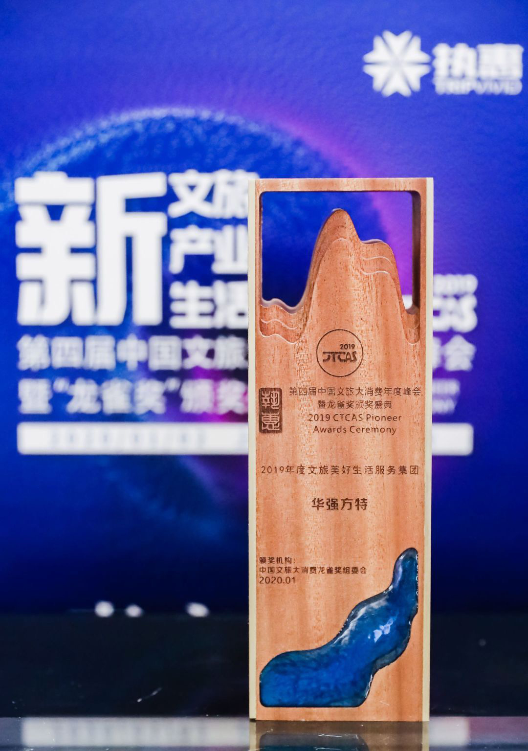 近日,由知名文旅大消費產業新媒體“執惠”主辦的“2019第四屆中國文旅大消費年度峰會暨‘龍雀獎’頒獎盛典”在上海舉行。憑借在文旅娛樂領域的亮眼表現,華強方特榮獲龍雀獎“2019年度文旅美好生活服務集團”和“2019年度最佳文旅新三板公司”兩項大獎?!褒埲釜劇笔侵?.