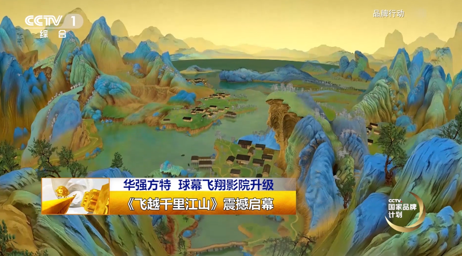近日,央視“國(guó)家品牌計(jì)劃”品牌行動(dòng)報(bào)道,自8月11日起華強(qiáng)方特旗下的方特主題樂(lè)園王牌項(xiàng)目——飛翔球幕影院《飛越極限》將升級(jí)為《飛越千里江山》;屆時(shí),廣大游客可通過(guò)方特獨(dú)創(chuàng)的“飛行觀畫(huà)”模式,在擁有4K分辨率的巨型球幕前,近距離領(lǐng)略北宋傳世名畫(huà)《千里江山圖..