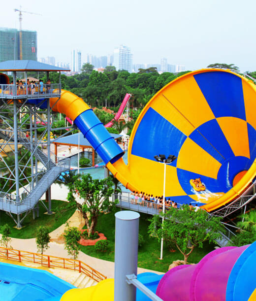 資陽方特水世界緊鄰資陽方特國(guó)色春秋,是華強(qiáng)方特集團(tuán)以熊出沒大電影《熊出沒·原始時(shí)代》為創(chuàng)意背景獨(dú)家打造的大型合家歡水世界。水世界擁有《颶風(fēng)灣》《飛躍河谷》《翻江倒海》《大喇叭》《超級(jí)碗》《叢林漂流》《熊出沒水寨》等17個(gè)大型特色水上項(xiàng)目及多項(xiàng)造景,其中多個(gè)項(xiàng)目榮膺國(guó)際行業(yè)旅游協(xié)會(huì)最佳水上設(shè)備獎(jiǎng)。《大喇叭》最高平臺(tái)近20米高,乘坐皮筏自最高處滑下,盤旋加速,解壓又刺激;真實(shí)模擬海洋沖浪的《颶風(fēng)灣》,擁有多達(dá)9種模式的波浪沖擊,可盡情體驗(yàn)大海的洶涌與澎湃;《熊出沒水寨》融合熊出沒動(dòng)漫元素打造了多款適合兒童及親子互動(dòng)的家庭戲水項(xiàng)目,是孩子們的嬉水天地。